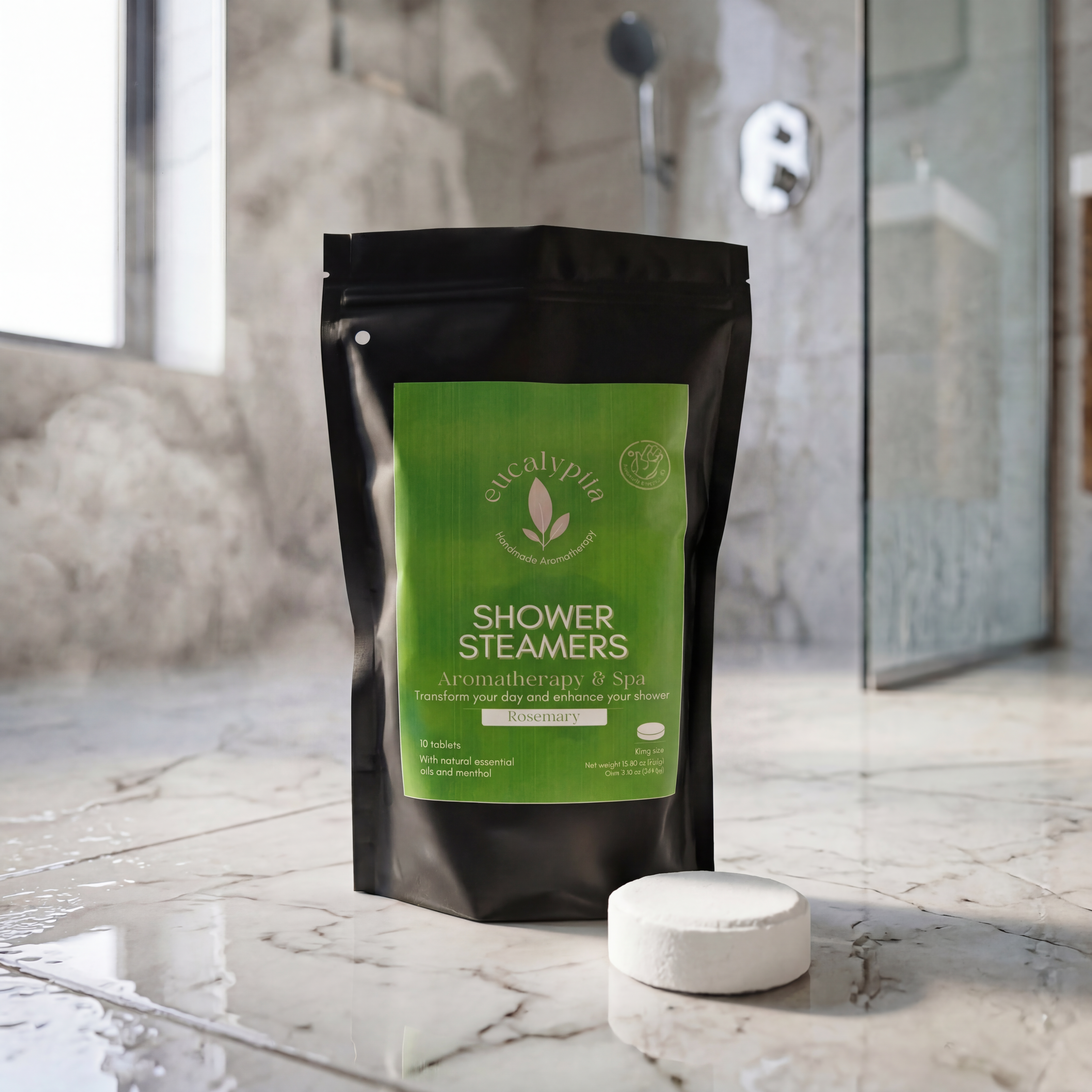 - Coloca una pastilla en el piso de la regadera, alejada del flujo directo del agua.