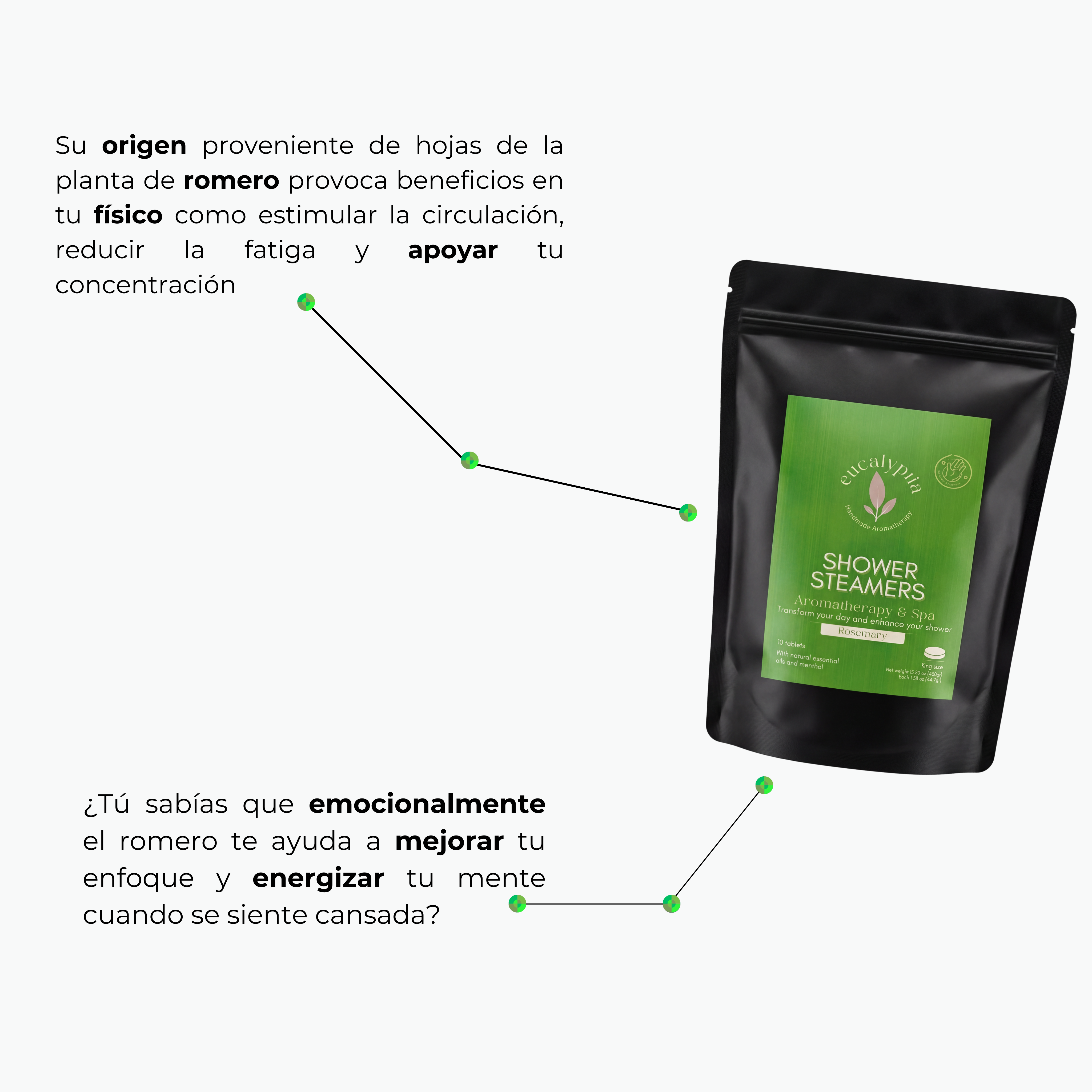 - Elaborados con aceites esenciales de menta y eucalipto.