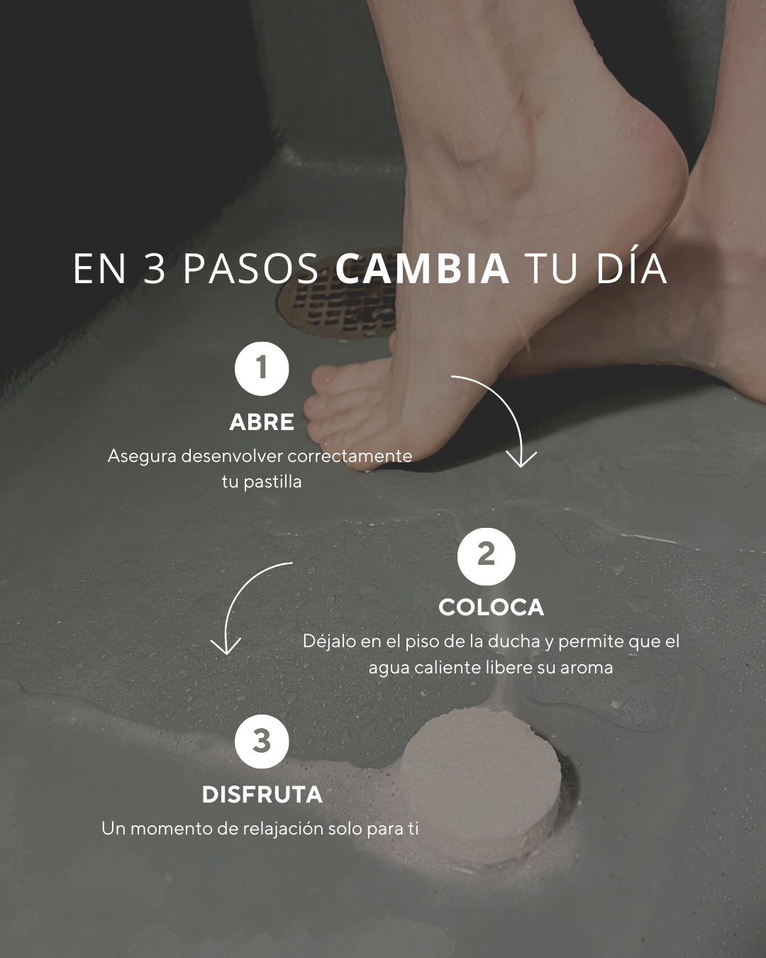 - Coloca una pastilla en el piso de la regadera, alejada del flujo directo del agua.